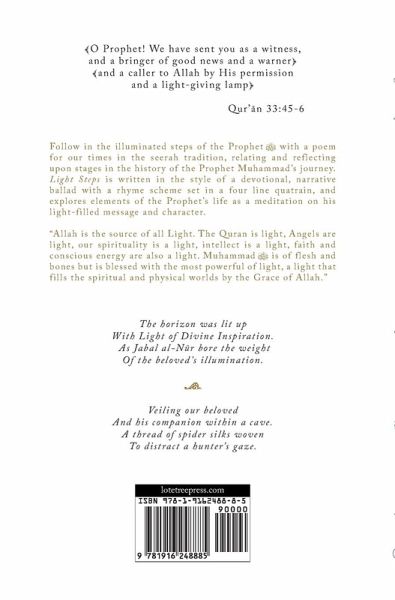 {O Prophet! We have sent you as a witness, and a bringer of good news and a warner} {And a caller to Allah by His permission and a light-giving lamp} Qur'ān 33:45-6 Follow in the illuminated steps of the Prophet ﷺ with a poem for our times in the seerah tradition, relating and reflecting upon stages in the history of the Prophet Muhammad's ﷺ journey. Author Ali Scully was born in Bradford and became Muslim in 1999, starting to work on the poem Light Steps soon afterwards. Realising he knew little about Prophet Muhammad ﷺ he set out to find out more about him, developing a deep love for the Prophet of Islam. The poem explores events from the Prophet's life and his exemplary qualities, and includes footnotes explaining Arabic terms and names describing the Prophet's beautiful characteristics. The horizon was lit upWith Light of Divine Inspiration.As Jabal al-Nūr bore the weightOf the beloved's illumination. Light Steps: A Poem on the Seerah of Prophet Muhammad ﷺ is a spiritually nourishing reflection on the life of the Messenger ﷺ, his noble character traits and his light-filled message. It is an ideal gift for Eid, graduation or for new converts.