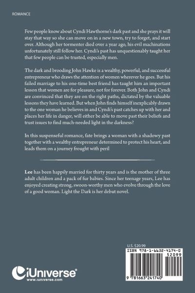 Few people know about Cyndi Hawthorne's dark past and she prays it will stay that way so she can move on in a new town, try to forget, and start over. Although her tormenter died over a year ago, his evil machinations unfortunately still follow her. Cyndi's past has unquestionably taught her that few people can be trusted, especially men. The dark and brooding John Hawke is a wealthy, powerful, and successful entrepreneur who draws the attention of women wherever he goes. But his failed marriage to his one-time best friend has taught him an important lesson that women are for pleasure, not for forever. Both John and Cyndi are convinced that they are on the right paths, dictated by the valuable lessons they have learned. But when John finds himself inexplicably drawn to the one woman he believes in and Cyndi's past catches up with her and places her life in danger, will either be able to move past their beliefs and trust issues to find much-needed light in the darkness? In this suspenseful romance, fate brings a woman with a shadowy past together with a wealthy entrepreneur determined to protect his heart, and leads them on a journey frought with peril.
