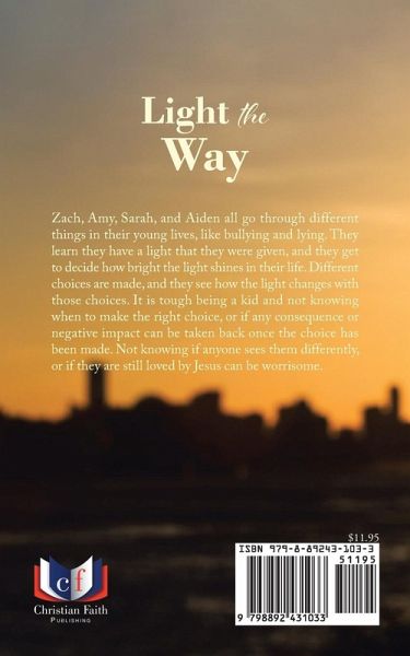 Zach, Amy, Sarah, and Aiden all go through different things in their young lives, like bullying and lying. They learn they have a light that they were given, and they get to decide how bright the light shines in their life. Different choices are made, and they see how the light changes with those choices. It is tough being a kid and not knowing when to make the right choice or if any consequence or negative impact can be taken back once the choice has been made. Not knowing if anyone sees them differently or if they are still loved by Jesus can be worrisome.