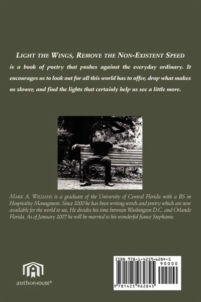 Light the Wings, Remove the Non-Existent Speed is a book of poetry that pushes against the everyday ordinary. It encourages us to look out for all this world has to offer, drop what makes us slower, and find the lights that certainly help us see a little more.