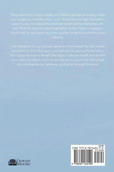 Things have been wrong in Jordan and Adam's marriage for so long, Jordan now struggles to remember when - or if - things were ever right. Somewhere along the way, she realized that she'd lost herself and her relationship with God. While she strives to make things better, to draw Adam to engage in church with her and spend more time together, he announces that he wants a divorce. Left feeling like the rug has been ripped out from beneath her feet, Jordan surrenders her life to God again, and leans into the journey He sets before her to draw her back to Himself. She begins to discover herself and her faith once more, and relearns the truth: she belongs to a good and faithful God who will always be her lighthouse, guiding her through the storms.