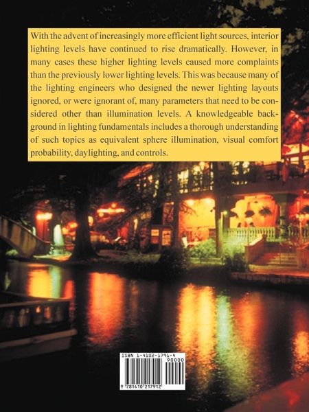 With the advent of increasingly more efficient light sources, interior lighting levels have continued to rise dramatically. However, in many cases these higher lighting levels caused more complaints than the previously lower lighting levels. This was because many of the lighting engineers who designed the newer lighting layouts ignored, or were ignorant of, many parameters that need to be considered other than illumination levels. A knowledgeable background in lighting fundamentals includes a thorough understanding of such topics as equivalent sphere illumination, visual comfort probability, daylighting, and controls.