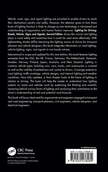Vehicle, road, sign, and signal lighting are provided to enable drivers to reach their destinations quickly and safely. However, the attention given to how these forms of lighting function is likely to change as new technology is introduced and understanding of ergonomics and human factors improves. Lighting for Driving: Roads, Vehicle, Signs and Signals, Second Edition shows the crucial role lighting plays in road safety and examines how it could be used more effectively. With light-emitting diodes (LEDs) becoming the lighting source of choice for transport planners and vehicle designers, this book integrates information on road lighting, vehicle lighting, signs, and signals in one handy volume.