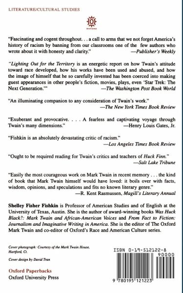 Mark Twain has been called the American Cervantes, our Homer, our Tolstoy, our Shakespeare. Ernest Hemingway maintained that `all modern American literature comes from one book by Mark Twain called Huckleberry Finn'. President Franklin Delano Roosevelt took the phrase `New Deal' from A Connecticut Yankee in King Arthur's Court. Twain's Gilded Age gave an entire era its name. Twain is everywhere -- in ads for Bass Ale, in episodes of `Star Trek,' as a greeter in Nevada's Silver Legacy casino. Clearly, the reports of his death have been greatly exaggerated. In Lighting Out for the Territory, Twain scholar Shelley Fisher Fishkin blends personal narrative with reflections on history, literature, and popular culture to provide a lively and provocative look at who Mark Twain really was, how he got to be that way, and what we do with his legacy today. Fishkin illuminates the many ways that America has embraced Mark Twain -- from the scenes and plots of his novels, to his famous quips, to his bushy-haired, white-suited persona. She reveals that we have constructed a Twain often far removed from the actual writer. For instance, we travel to Hannibal, Missouri, Mark Twain's home town, a locale that in his work is both the embodiment of the innocence of childhood and also an emblem of hypocrisy, barbarity, and moral rot. The author spotlights the fact that Hannibal today attracts hundreds of thousands of tourists and takes in millions yearly, by focusing on Tom Sawyer's boyhood exploits -- marble-shoots and white-washed fences -- and ignoring Twain's portraits of the darker side of the slave South. The narrative moves back and forth from modern Hannibal to antebellum Hannibal and to Mark Twain's childhood experiences with brutality and slavery. Her exploration of those subjects in his work shows that Tom Sawyer's fence isn't the only thing being white-washed in Hannibal. Fishkin's research yields fresh insights into the remarkable story of how this child of slaveholders became the author of the most powerful anti-racist novel by an American. Whether lending his name to a pizza parlor in Louisiana, a diner in Jackson Heights, New York, or an asteroid in outer space, whether making cameo appearances on `Cheers' and `Bonanza', or turning up in novels as a detective or a love interest, Mark Twain's presence in contemporary culture is pervasive and intriguing. Fishkin's wide-ranging examination of that presence demonstrates how Twain and his work echo, ripple, and reverberate throughout our society. We learn that Walt Disney was a great fan of Twain's fiction (in fact, `Tom Sawyer's Island' in Disneyland is the only part of the park that Disney himself designed) as is Chuck Jones, who credits the genesis of cartoon character Wile E. Coyote to the comic description of a coyote in Roughing It. We learn of Mark Twain impersonators (Hal Holbrook, for instance, has played Twain in some 1,500 performances) and recent movie versions of Twain books, such as A Million to Juan. And we discover how Twain's image can be seen in claymation, in animatronics and robotics, in virtual reality, and on any number of home-pages on the Internet. Lighting Out for the Territory offers an engrossing look at how Mark Twain's life and work have been cherished, memorialized, exploited, and misunderstood. It offers a wealth of insight into Twain, into his work, and into our nation, both past and present.