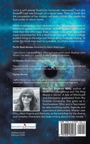 Lucia a self-aware Quantum computer recovered from the Roswell crash was brought to a secret base. Time on Earth and the completion of her mission will soon collide. She awaits the final codes to return home. While investigating alien abductions the CIA uncover some of America's ugliest social injustices. Several women return some meet their fate other ways. Rose a minister's daughter, Jacqueline a gay schoolteacher, Eve a deaf-mute farm girl, Molly a college student living on the edge and Rita an Army nurse are missing. To some this book may read as a parable, to others a premonition.