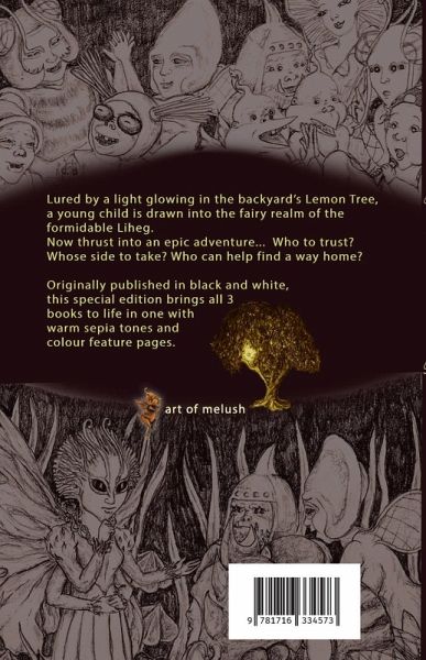 Lured by a light glowing in the backyard's Lemon Tree, a young child is drawn into the fairy realm of the formidable Liheg. Now thrust into an epic adventure... Who to trust? Whose side to take? Who can help find a way home? Originally published in black and white, this special edition brings all 3 books to life in one with warm sepia tones and colour feature pages. Come enter the world of the fairies in this "silent comic" where only images and no words means you become like the child of the story, on a quest to discover what is really going on in this realm of Liheg!