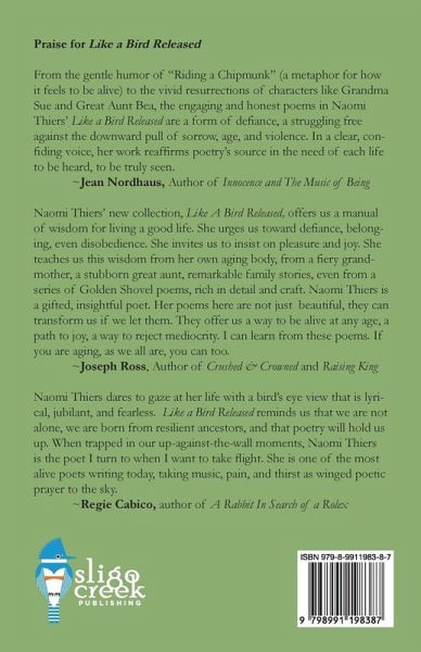 Naomi Thiers' fifth collection includes thirty-seven new poems. As Regie Cabico writes, they are "a bird's eye view" of her life. "Naomi Thiers is the poet I turn to, when I want to take flight." "She urges us toward defiance, belonging, even disobedience," says Joseph Roth.