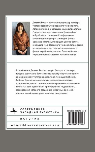 ENG Like A Bomb Going Off explores the rich and complex history of twentieth-century ballet and the even more complex history of the expressive arts in the Soviet Union through the lens of one of its most relentless renegades, Leonid Yakobson. A tightly focused and fascinating study of Leonid Yakobson's work, this biography presents its subject through the multiple ideologies of which he was both a product and a critic, offering a view of him as an artist, a citizen, a Jew, and a man of high-minded principle. Yakobson, a contradictory and fascinating artist, challenged censors, staging resistance from within the most public vocabulary of compliance - classical ballet. Ross’s book traces how Yakobson was an artist of contradictions, a modernist who made war on ballet and used unconventional movement while making dances for the leading Soviet companies and Russia’s greatest dancers. RUS В своей книге Дженис Росс исследует богатую и сложную историю советского балета сквозь призму творчества одного из главных возмутителей спокойствия, Леонида Якобсона. Якобсон бросал вызов цензорам, преодолевая жесткие эстетические рамки статичного и консервативного советского балета. Он был художником противоречий, м&a