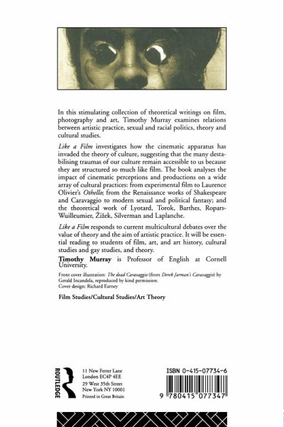 In this stimulating collection of theoretical writings on film, photography, and art, Timothy Murray examines relations between artistic practice, sexual and racial politics, theory and cultural studies. Like a Film investigates how the cinematic apparatus has invaded the theory of culture, suggesting that the many destabilising traumas of our culture remain accessible to us because they are structured so much like film. The book analyses the impact of cinematic perceptions and productions on awide array of cultural practices: from the Renassance works of Shakespeare and Caravaggio to modern sexual and political fantasy; and the theoretical work of Lyotard, Torok, Barthes, Ropars-Wuilleumier, Zizek, Silverman and Laplanche.Like A Film responds to current multicultural debates over the value of theory and the aim of artistic practice.