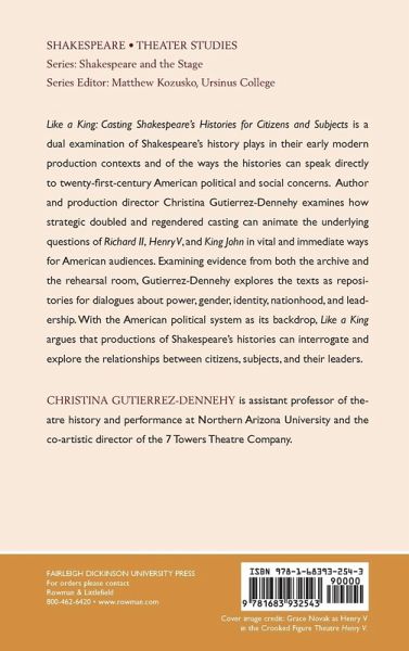 Like a King argues that strategic casting positions Shakespeare’s histories as spaces for American political discourse. Drawing from the archive and the rehearsal room, the book examines productions of Richard II, Henry V and King John in the renaissance and the twenty-first century.