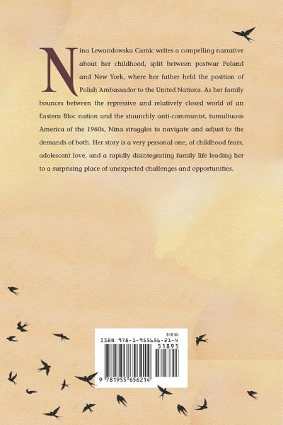 Nina Lewandowska Camic writes a compelling narrative about her childhood, split between postwar Poland and New York, where her father held the position of Polish Ambassador to the United Nations. As her family bounces between the repressive and relatively closed world of an Eastern Bloc nation and the staunchly anti-communist, tumultuous America of the 1960s, Nina struggles to navigate and adjust to the demands of both. Her story is a very personal one, of childhood fears, adolescent love, and a rapidly disintegrating family life leading her to a surprising place of unexpected challenges and opportunities.