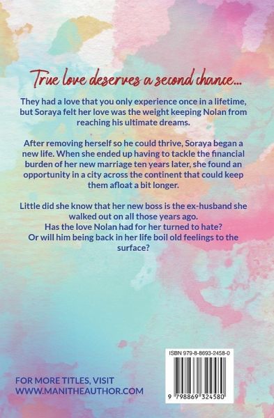 True love deserves a second chance... They had a love that you only experience once in a lifetime, but Soraya only felt her love was the weight keeping Nolan from reaching his ultimate dreams. After removing herself so he could thrive, Soraya began a new life for herself. When she ended up having to tackle the financial burden of her new marriage, she found an opportunity in a new city across the continent that could keep them afloat a bit longer. Little did she know her new boss is the ex-husband she walked out on all those years ago. Has the love Nolan had for her turned to hate? Or will him being back in her life boil old feelings to the surface?