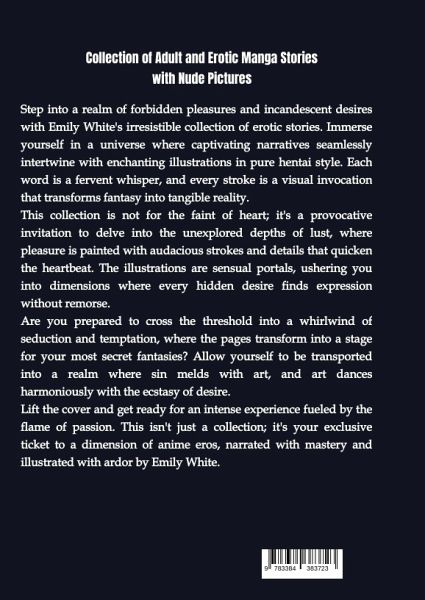 Indulge in an Unforgettable Journey of Passion and Temptation with Emily White's Erotic Masterpiece!Step into a captivating world where seduction knows no bounds in Emily White's latest collection of scintillating erotic stories, enriched with enchanting hentai illustrations. Immerse yourself in a universe where each word is a whispered promise, and every brushstroke is a visual enchantment that brings fantasies to life in pure hentai style.This collection is a daring invitation to explore the uncharted depths of desire, where pleasure unfolds with audacious strokes and details that will quicken your heartbeat. The carefully crafted hentai illustrations serve as sensuous portals, transporting you into dimensions where every hidden fantasy finds unabashed expression.What to Expect:- A Fusion of Literary Mastery and Sensual Artistry- Explicit and Alluring Hentai Illustrations- Stories That Explore the Boundaries of Lust and Fantasy- A Whirlwind of Seduction and TemptationThis isn'tjust a collection; it's your exclusive ticket to a dimension of hentai eros, meticulously narrated and ardently illustrated by Emily White. Lift the cover and prepare for an intense experience fueled by the flame of passion.Caution: This Collection is Not for the Faint of Heart. Are You Ready to Cross the Threshold?