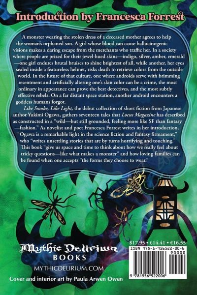"Like Smoke, Like Light, the debut collection of short fiction from Japanese author Yukimi Ogawa, gathers seventeen tales that Locus Magazine has described as constructed in a "wild-but still grounded, feeling more like SF than fantasy-fashion." As novelist and poet Francesca Forrest writes in her introduction, "Ogawa is a remarkable light in the science fiction and fantasy firmament," who "writes unsettling stories that are by turns horrifying and touching." This book "give us space and time to think about how we really feel about tricky questions-like what makes a monster" and how loving families can be found when one accepts "the forms they choose to wear."--Publisher's description.