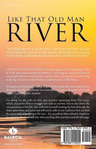 "He didn't know it at the time, but from the first day his mama knew he existed in her womb, there had been a target on his back, and home would never be a safe haven for him." Like That Old Man River is a heartfelt saga set in the Mississippi Delta in 1924 and centers around two families-one living in a small rural colored community known as Cainstown and the other a prosperous family living in the lap of luxury in the all-white sundown town of McAllister. Set against a historical backdrop of Jim Crow South, this emotional journey chronicles the life of a mulatto boy named River born as the result of a brutal rape to a psychopathic mother. Go along for the ride on this epic journey spanning forty-five years that chronicles River's struggle not only to survive, but to rise above the circumstances of his life. You will find yourself rooting for him through the many plot twists and turns and will not be able to rest until you find out how the story ends. One thing is for sure-he, as well as other colorful characters described in this book, will stay with you long after you have read the last page.