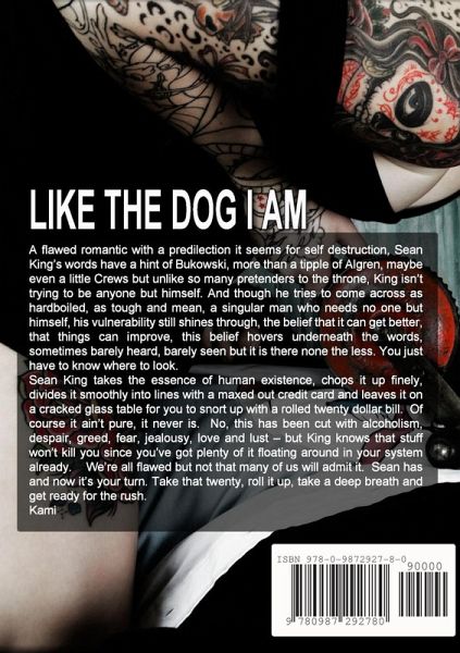A flawed romantic with a predilection it seems for self destruction, Sean King's words have a hint of Bukowski, more than a tipple of Algren, maybe even a little Crews but unlike so many pretenders to the throne, King isn't trying to be anyone but himself. And though he tries to come across as hardboiled, as tough and mean, a singular man who needs no one but himself, his vulnerability still shines through, the belief that it can get better, that things can improve, this belief hovers underneath the words, sometimes barely heard, barely seen but it is there none the less. You just have to know where to look.