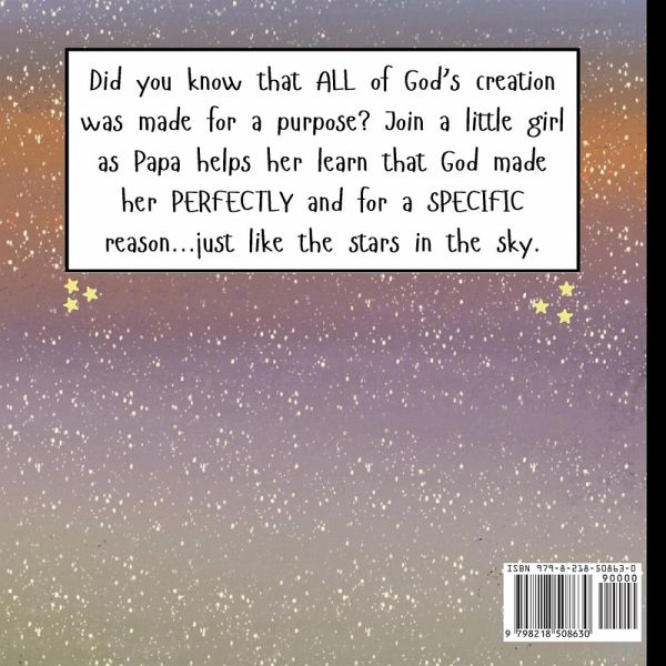 Did you know that all of God's creation was made for a purpose? Join a little girl as Papa helps her learn that God created her perfectly and knows everyone by name...just like the stars in the sky.