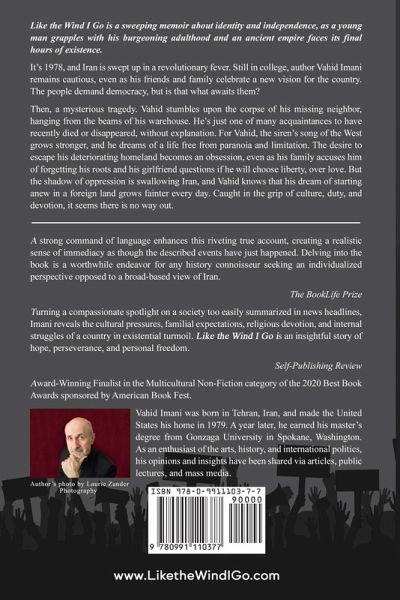 A young Iranian man, wedged between ancient traditions and infused Western values, attempts to depart Iran during the 1978 revolution in search of freedom in the West. Like the Wind I Go is the story of his journey, plowing through the obstacles of ordinary life during an extraordinary time.
