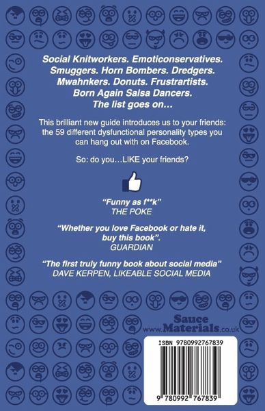 World famous Facebook inventor and much-loved data sharing guru Zak Muckerberg gives us the inside track on YOUR Facebook friends in this, the BRAND NEW 2020 edition of his bestselling Facebook Personality Bible. From Social Knitworkers to Emoticonservatives, Smuggers to Horn Bombers, Dredgers to Mwahnkers, Donuts to Frustrartists, Zak shares his thoughts on the 59 different dysfunctional personality types you can hang out with on Facebook. With Zak's help, it's finally time for a deep dive into your social media friends list as you decide once and for all if YOU...LIKE YOUR FRIENDS." "The first truly funny book about social media" - DAVE KERPEN, LIKEABLE SOCIAL MEDIA "Funny as f**k" - THE POKE "Whether you love Facebook or hate it, buy this book" - GUARDIAN