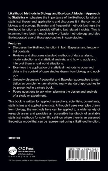 Emphasizes importance of likelihood function in statistical theory and applications, discusses it in the context of biology and ecology. Bayesian and frequentist methods use the likelihood function and provide differing but related insights - examined here through review of basic methodology and integrated use of these approaches in case studies.