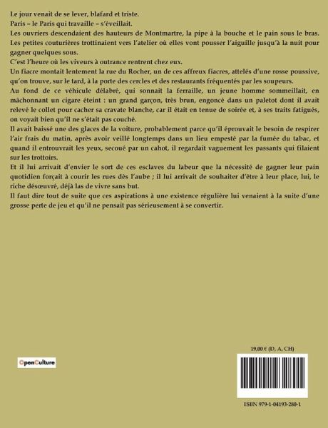 Un regard perçant et une enquête haletante: ' L'il de Chat ' de Fortuné du Boisgobey nous plonge dans les méandres d'une intrigue policière captivante. Au cur du Paris du XIXe siècle, une ville en pleine effervescence, un meurtre mystérieux secoue la société. L'inspecteur Lecoq, célèbre pour son esprit acéré et sa détermination sans faille, se retrouve face à une énigme complexe. Le décor est planté dans une capitale où les contrastes entre opulence et misère sont saisissants, et où chaque ruelle semble receler un secret. L'intrigue se déploie autour de la disparition d'un bijou d'une valeur inestimable, l'il de Chat, dont la légende dit qu'il porte malheur à quiconque le possède. Ce roman policier, empreint de suspense et de rebondissements, explore les thèmes de la cupidité, de la justice et de la rédemption. Les personnages, finement dessinés, évoluent dans un univers où les apparences sont souvent trompeuses, et où la vérité se cache derrière un voile de mensonges et de trahisons. Fortuné du Boisgobey, maître du roman feuilleton, nous offre ici une fresque sociale et humaine, où chaque détail compte et où le lecteur est invité à suivre les indices disséminés avec habileté. En suivant les pas de l'inspecteur Lecoq, nous découvrons les rouages d'une enquête minutieuse, où chaque déduction nous rapproche un peu plus de la vérité. Ce livre nous enseigne l'importance de la perspicacité et de la patience dans la quête de justice, tout en nous offrant un voyage fascinant à travers le Paris de la Belle Époque.