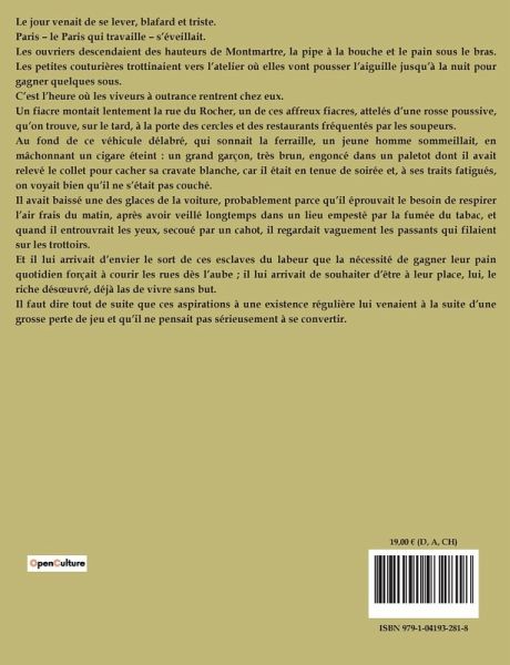 Un regard perçant et une enquête haletante: ' L'IL DE CHAT ' de Fortuné du Boisgobey nous plonge dans les méandres d'une intrigue policière captivante. Au cur du Paris du XIXe siècle, une ville en pleine effervescence, un mystérieux meurtre secoue la société. L'inspecteur Lecoq, célèbre pour son flair infaillible, est appelé à résoudre cette affaire complexe. Le lecteur est transporté dans une époque où les contrastes entre les classes sociales sont marqués, et où chaque ruelle de la capitale semble receler un secret. L'intrigue se déroule dans un cadre où la modernité commence à s'imposer, mais où les traditions restent tenaces. Les enjeux sont multiples: justice, vérité, et la quête personnelle de Lecoq pour prouver son talent face à des adversaires redoutables. Ce roman policier classique explore les thèmes de la justice et de la moralité, tout en offrant une analyse fine des motivations humaines. À travers une narration détaillée, Fortuné du Boisgobey nous entraîne dans un voyage à travers les rues pavées de Paris, où chaque indice compte et où le moindre faux pas peut être fatal. Le lecteur est invité à suivre les déductions de Lecoq, à ressentir la tension croissante et à découvrir les rouages d'une enquête minutieuse. En suivant les pas de l'inspecteur, nous découvrons non seulement les dessous d'une enquête policière, mais aussi les complexités de l'âme humaine. Ce livre nous offre une perspective sur la société de l'époque, tout en nous tenant en haleine jusqu'à la dernière page. Par son écriture précise et son intrigue bien ficelée, ' L'IL DE CHAT ' nous apprend à mieux comprendre les subtilités de la nature humaine et les défis de la quête de vérité.