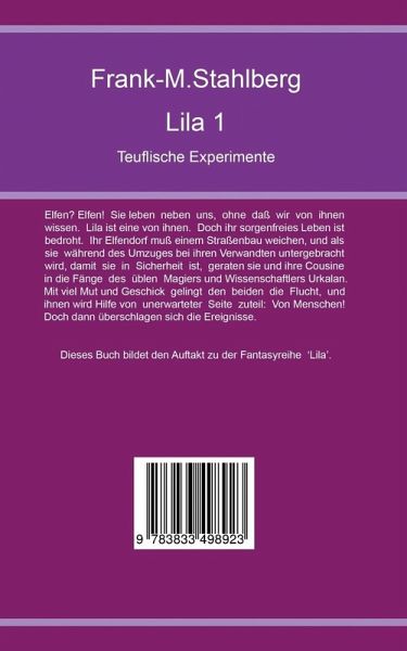 Elfen? Elfen! Sie leben neben uns, ohne dass wir von ihnen wissen. Lila ist eine von ihnen. Doch ihr sorgenfreies Leben ist bedroht. Ihr Elfendorf muss einem Straßenbau weichen, und als sie während des Umzuges bei ihren Verwandten untergebracht wird, damit sie in Sicherheit ist, geraten sie und ihre Cousine in die Fänge des üblen Magiers und Wissenschaftlers Urkalan. Mit viel Mut und Geschick gelingt den beiden die Flucht, und ihnen wird Hilfe von unerwarteter Seite zuteil: Von Menschen! Doch dann überschlagen sich die Ereignisse.184 Seiten; 8 ganzseitige Illustrationen