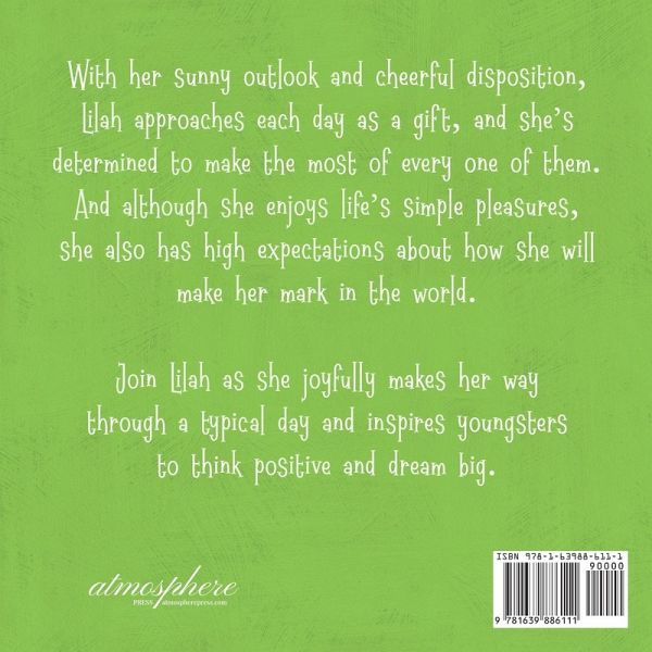 With her sunny outlook and cheerful disposition, Lilah approaches each day as a gift, and she's determined to make the most of every one of them. And although she enjoys life's simple pleasures, she also has high expectations about how she will make her mark in the world. Join Lilah as she joyfully makes her way through a typical day and inspires youngsters to think positive and dream big.