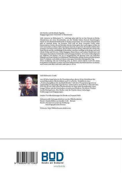 Lili Marlen und die blinde Ziganka. Begegnungen einer Deutschen in Mazedonien Lilli, Lehrerin im Ruhestand, 71, verbringt jedes Jahr bis zu vier Monate in Bitola, Mazedonien, bei einer Romafamilie, um der blinden Selma Deutsch beizubringen, damit sie die Blindenhörbibliothek in Berlin nutzen kann. Im verarmten Mazedonien gibt es nämlich keine. Im Sommer 2010 will sie ihrer Freundin Uschi, die auf Krücken durchs Leben geht, das Land zeigen, in dem sie sich inzwischen zu Hause fühlt und dessen Sprache sie spricht. Die beiden erleben den Sommer und seine Feste in Bair, dem Wohnviertel der Roma, erkunden die schöne alte Stadt Bitola und ihr reichhaltiges Kulturleben, machen Ausflüge in die Berge und nach Ohrid, Prilep und Krusevo. Dabei begegnen ihnen Roma und andere Mazedonier mit ihren ganz besonderen Schicksalen und Lebensgeschichten. Als Uschi wieder abgereist ist, begleitet Lili Marlen, wie sie in exJugoslawien oft genannt wird, ein jüdisches Ehepaar aus Israel, Kinder von Holokaust Überlebenden, auf der Suche nach den Spuren ihrer Vorfahren, und erlebt mit ihnen einen ganz besonders bewegenden Tag. Diese Erzählung soll eine Einladung sein, in dieses schöne kleine Land mit seiner komplexen Geschichte zu reisen und seine liebenswerten Bewohner kennen zu lernen, auch wenn man älter und nicht mehr ganz so fit ist.