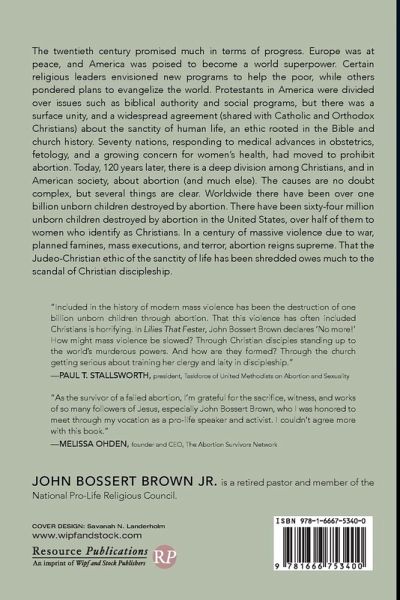The twentieth century promised much in terms of progress. Europe was at peace, and America was poised to become a world superpower. Certain religious leaders envisioned new programs to help the poor, while others pondered plans to evangelize the world. Protestants in America were divided over issues such as biblical authority and social programs, but there was a surface unity, and a widespread agreement (shared with Catholic and Orthodox Christians) about the sanctity of human life, an ethic rooted in the Bible and church history. Seventy nations, responding to medical advances in obstetrics, fetology, and a growing concern for women's health, had moved to prohibit abortion. Today, 120 years later, there is a deep division among Christians, and in American society, about abortion (and much else). The causes are no doubt complex, but several things are clear. Worldwide there have been over one billion unborn children destroyed by abortion. There have been sixty-four million unborn children destroyed by abortion in the United States, over half of them to women who identify as Christians. In a century of massive violence due to war, planned famines, mass executions, and terror, abortion reigns supreme. That the Judeo-Christian ethic of the sanctity of life has been shredded owes much to the scandal of Christian discipleship.