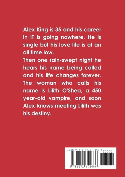 Alex King is 35 and his career in IT is going nowhere. He is single but his love life is at an all time low. Then one rain swept night he hears his name being called and his life changes forever. The woman who calls his name is Lilith O'Shea, a 450 year old vampire, and soon Alex knows meeting Lilith was his destiny.