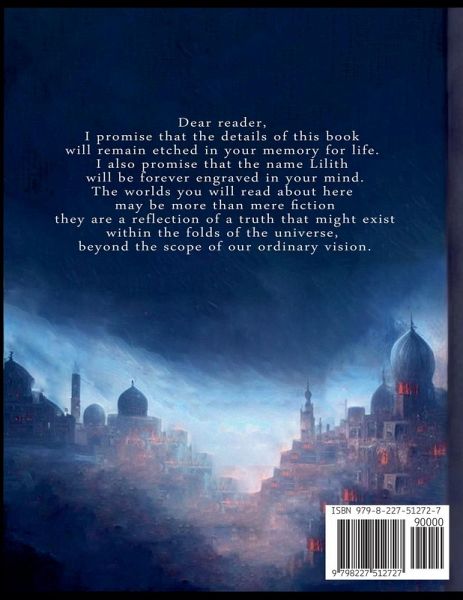 This novel intertwines religions, spirituality, and philosophy. Dear reader, regardless of your belief, religion, culture, or even if you are secular, I promise you that you will be astonished by this novel, and your life will change after reading it. I promise that its details will remain etched in your memory for life. I also promise that the name Lilith will be forever engraved in your mind. Dear reader, Welcome to the pages of this novel, which represents a deep personal and intellectual journey for me. It is among the latest and finest work I have ever written. As you delve into the strange and mysterious realms of this story, I would like to share a secret that may seem unfamiliar but is profoundly meaningful to me. This novel was the result of mysterious flows of inspiration; it was not merely a product of my conscious mind, but rather ideas flowed into my mind as if sent from a supernatural world, from a hidden place whose source I do not know. During the writing process, I felt as though I was merely a conduit for visions and concepts that transcended the limits of my knowledge and understanding of the world. This hidden inspiration led me to construct parallel worlds where lost souls meet and nightmares become tangible realities. The worlds you will read about here may be more than mere fiction; they are a reflection of a truth that might exist within the folds of the universe, beyond the scope of our ordinary vision. I invite you to open your heart and mind as you read, to experience this spiritual and intellectual journey with me, and to allow yourself to question the source of creativity and whether there are hidden forces guiding us toward discovering deeper truths about our existence. Perhaps, within these pages, you too may find a glimmer of inspiration that transcends the boundaries of this world. I wish you an enjoyable journey filled with reflection and inquiry. With warm regards, Poet and Novelist: Khalil Altahhan