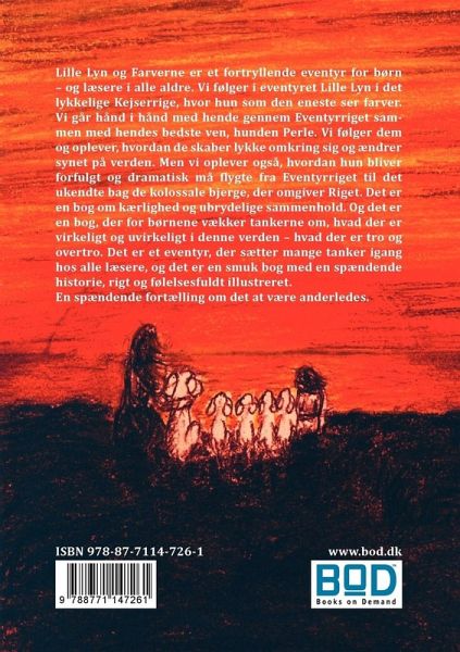 Lille Lyn og Farverne er et fortryllende eventyr for børn og læsere i alle aldre. Vi følger i eventyret Lille Lyn i det lykkelige Kejserrige, hvor hun som den eneste ser farver. Vi går hånd i hånd med hende gennem Eventyrriget sammen med hendes bedste ven, hunden Perle. Vi følger dem og oplever, hvordan de skaber lykke omkring sig og ændrer synet på verden. Men vi oplever også, hvordan hun bliver forfulgt og dramatisk må flygte fra Eventyrriget til det ukendte bag de kolossale bjerge, der omgiver Riget. Det er en bog om kærlighed og ubrydelige sammenhold. Og det er en bog, der for børnene vækker tankerne om, hvad der er virkeligt og uvirkeligt i denne verden hvad der er tro og overtro. Det er et eventyr, der sætter mange tanker igang hos alle læsere, og det er en smuk bog med en spændende historie, rigt og følelsesfuldt illustreret.En spændende fortælling om det at være anderledes.