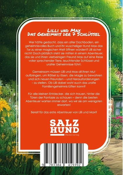 Lilli & Max - Das Geheimnis der sieben SchlüsselTauche ein in ein magisches Abenteuer voller Rätsel, Freundschaft und Mut!Lilli ist ein neugieriges und mutiges Mädchen, das immer auf der Suche nach dem nächsten spannenden Abenteuer ist. Gemeinsam mit Max, ihrem treuen, wuscheligen Hund, entdeckt sie auf dem Dachboden ihrer Großeltern ein altes, geheimnisvolles Buch. Doch dieses Buch ist kein gewöhnliches Buch! Es birgt das Geheimnis der sieben Schlüssel, die sie auf eine Reise in eine Welt voller Magie, sprechender Tiere und versteckter Orte führt.Zusammen müssen Lilli und Max all ihren Mut…mehr