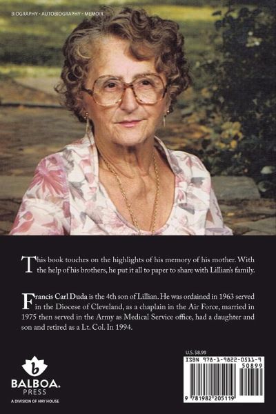 Francis Carl Duda is the 4th son of Lillian. He was ordained in 1963 served in the Diocese of Cleveland, as a chaplain in the Air Force, married in 1975 then served in the Army as Medical Service office, had a daughter and son and retired as a Lt. Col. In 1994.