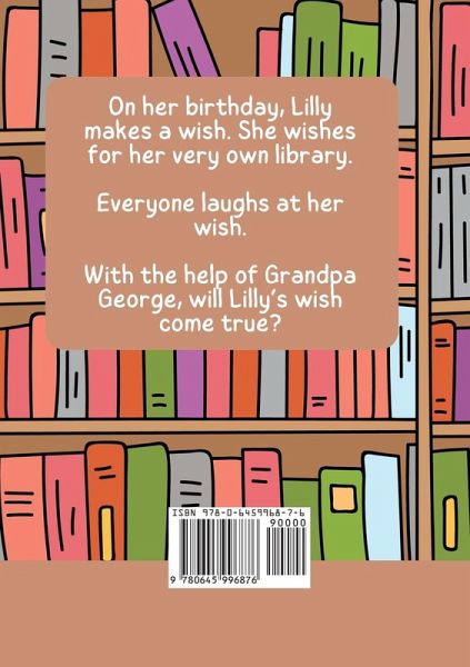 On her birthday, Lilly makes a wish. She wishes for her very own library. Everyone laughs at her wish. With the help of Grandpa George, will Lilly's wish come true? A junior fiction story featuring a girl who loves reading