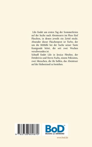 Lilo findet am ersten Tag der Sommerferien auf der Suche nach Abenteuern im Fluss fünf Flaschen, in denen jeweils ein Zettel steckt. Absender dieser Flaschenpost ist Turbo, der um die Mithilfe bei der Suche seiner Tante Kunigunde bittet, die seit zwei Wochen verschwunden ist.In Herrn Fuchs, einem Polizisten und Jessica Fletcher, einer Detektivin, findet sie schnell zwei Verbündete, die ihr helfen, das Abenteuer zu bestehen und Tante Kunigunde wieder zu finden.