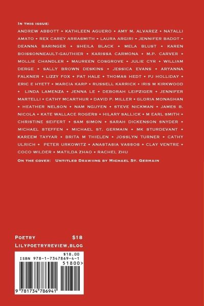 Lily Poetry Review is an international poetry journal/anthology featuring art, flash fiction and poetry. Featuring Kathleen Aguero, Michael ST Germaine, Jenne Le, Gloria Monaghan, Nam Nguyen, Sarah Dickenson Snyder, MK Sturdevant, Marcia Karp, Eric E Hyett, Jennifer Martelli