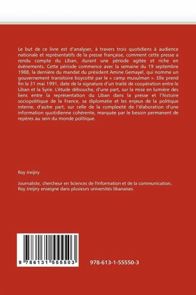 Le but de ce livre est d'analyser, à travers trois quotidiens à audience nationale et représentatifs de la presse française, comment cette presse a rendu compte du Liban, durant une période agitée et riche en événements. Cette période commence avec la semaine du 19 septembre 1988, la dernière du mandat du président Amine Gemayel, qui nomme un gouvernement transitoire boycotté par le " camp musulman ". Elle prend fin le 31 mai 1991, date de la signature d'un traité de coopération entre le Liban et la Syrie. L'étude débouche, d'une part, sur la mise en lumière des liens entre la représentation du Liban dans la presse et l'histoire sociopolitique de la France, sa diplomatie et les enjeux de la politique interne, d'autre part, sur celle de la complexité de l'élaboration d'une information quotidienne cohérente, marquée par le besoin permanent de repères au sein du monde politique.