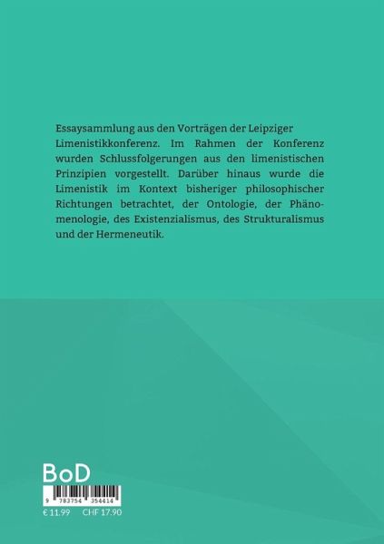 Essaysammlung aus den Vorträgen der Leipziger Limenistikkonferenz. Im Rahmen der Konferenz wurden Schlussfolgerungen aus den limenistischen Prinzipien vorgestellt. Darüber hinaus wurde die Limenistik im Kontext bisheriger philosophischer Richtungen betrachtet, der Ontologie, der Phänomenologie, des Existenzialismus, des Strukturalismus und der Hermeneutik.