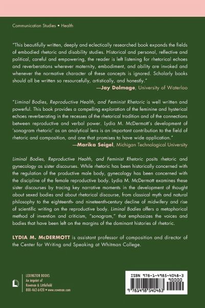 Liminal Bodies, Reproductive Health, and Feminist Rhetoric uses a feminist disability framework to argue that women’s bodies are understood within a medical framework of pathology directly related to their ability, or inability, to reproduce.