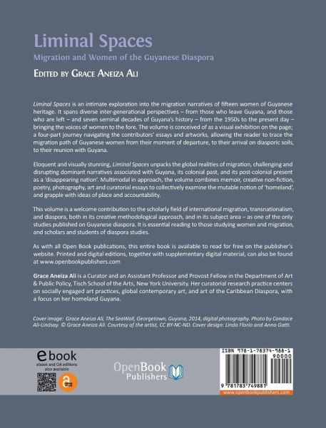 Liminal Spaces is an intimate exploration into the migration narratives of fifteen women of Guyanese heritage. It spans diverse inter-generational perspectives - from those who leave Guyana, and those who are left - and seven seminal decades of Guyana's history - from the 1950s to the present day - bringing the voices of women to the fore. The volume is conceived of as a visual exhibition on the page; a four-part journey navigating the contributors' essays and artworks, allowing the reader to trace the migration path of Guyanese women from their moment of departure, to their arrival on diasporic soils, to their reunion with Guyana. Eloquent and visually stunning, Liminal Spaces unpacks the global realities of migration, challenging and disrupting dominant narratives associated with Guyana, its colonial past, and its post-colonial present as a 'disappearing nation'. Multimodal in approach, the volume combines memoir, creative non-fiction, poetry, photography, art and curatorial essays to collectively examine the mutable notion of 'homeland', and grapple with ideas of place and accountability. This volume is a welcome contribution to the scholarly field of international migration, transnationalism, and diaspora, both in its creative methodological approach, and in its subject area - as one of the only studies published on Guyanese diaspora. It will be of great interest to those studying women and migration, and scholars and students of diaspora studies.