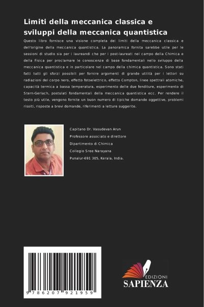 Questo libro fornisce una visione completa dei limiti della meccanica classica e dell'origine della meccanica quantistica. La panoramica fornita sarebbe utile per le sessioni di studio sia per i laureandi che per i post-laureati nel campo della Chimica e della Fisica per proclamare le conoscenze di base fondamentali nello sviluppo della meccanica quantistica e in particolare nel campo della chimica quantistica. Sono stati fatti tutti gli sforzi possibili per fornire argomenti di grande utilità per i lettori su radiazioni del corpo nero, effetto fotoelettrico, effetto Compton, linee spettrali atomiche, capacità termica a bassa temperatura, esperimento delle due fenditure, esperimento di Stern-Gerlach, postulati fondamentali della meccanica quantistica ecc. Per rendere il testo più utile, vengono fornite un buon numero di tipiche domande oggettive, problemi risolti, risposte a brevi domande, riferimenti a letture suggerite.