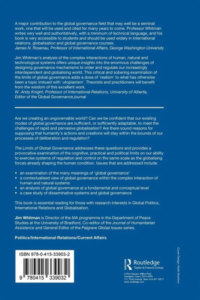 "The Limits of Global Governance "addresses these questions and provides a provocative examination of the cognitive, practical and political limits on our ability to exercise systems of regulation and control on the same scale as the globalizing forces already shaping the human condition. Issues that are addressed include: