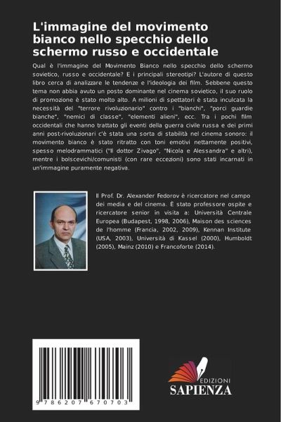 Qual è l'immagine del Movimento Bianco nello specchio dello schermo sovietico, russo e occidentale? E i principali stereotipi? L'autore di questo libro cerca di analizzare le tendenze e l'ideologia dei film. Sebbene questo tema non abbia avuto un posto dominante nel cinema sovietico, il suo ruolo di promozione è stato molto alto. A milioni di spettatori è stata inculcata la necessità del "terrore rivoluzionario" contro i "bianchi", "porci guardie bianche", "nemici di classe", "elementi alieni", ecc. Tra i pochi film occidentali che hanno trattato gli eventi della guerra civile russa e dei primi anni post-rivoluzionari c'è stata una sorta di stabilità nel cinema sonoro: il movimento bianco è stato ritratto con toni emotivi nettamente positivi, spesso melodrammatici ("Il dottor Zivago", "Nicola e Alessandra" e altri), mentre i bolscevichi/comunisti (con rare eccezioni) sono stati incarnati in un'immagine puramente negativa.