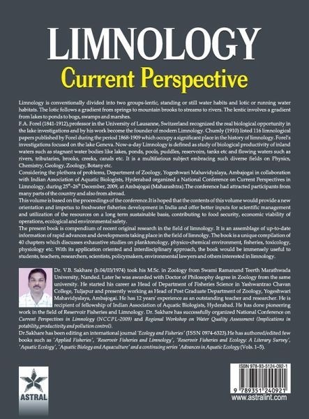 Limnology is conventionally divided into two groups-lentic, standing or still water habits and lotic or running water habitats. The lotic follows a gradient from springs to mountain brooks to streams to rivers. The lentic involves a gradient from lakes to ponds to bogs, swamps and marshes. F.A. Forel (1841-1912),professor in the University of Lausanne, Switzerland recognized the real biological opportunity in the lake investigations and by his work become the founder of modern Limnology. Chumly (1910) listed 116 limnological papers published by Forel during the period 1868-1909 which occupy a significant place in the history of limnology. Forel's investigations focused on the lake Geneva. Now-a-day Limnology is defined as study of biological productivity of inland waters such as stagnant water bodies like lakes, ponds, pools, puddles, reservoirs, tanks etc and flowing waters such as rivers, tributaries, brooks, creeks, canals etc. It is a multifarious subject embracing such diverse fields on Physics, Chemistry, Geology, Zoology, Botany etc. Considering the plethora of problems, Department of Zoology, Yogeshwari Mahavidyalaya, Ambajogai in collaboration with Indian Association of Aquatic Biologists, Hyderabad organized a National Conference on Current Perspectives in Limnology, during 25th-26th December, 2009, at Ambajogai (Maharashtra).The conference had attracted participants from many parts of the country and also from abroad. This volume is based on the proceedings of the conference.It is hoped that the contents of this volume would provide a new orientation and impetus to freshwater fisheries development in India and offer better inputs for scientific management and utilization of the resources on a long term sustainable basis, contributing to food security, economic viability of operations, ecological and environmental safety. The present book is compendium of recent original research in the field of limnology. It is an assemblage of up-to-date information of rapid advances and developments taking place in the field of limnolgy. The book is a unique compilation of 40 chapters which discusses exhaustive studies on planktonology, physico-chemical environment, fisheries, toxicology, physiology etc. With its application oriented and interdisciplinary approach, the book would be immensely useful to students, teachers, researchers, scientists, policymakers, environmental lawyers and others interested in limnology.