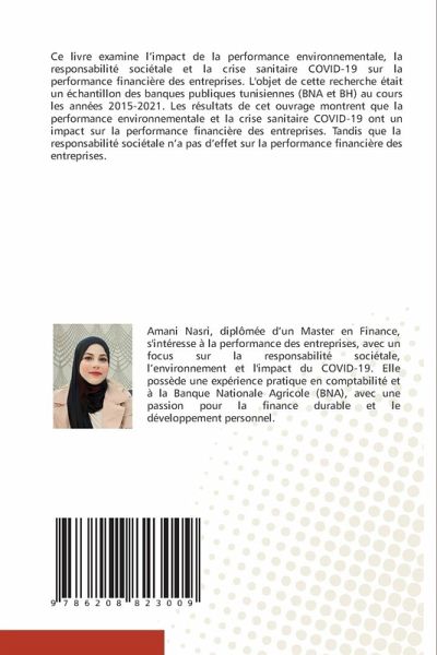 Ce livre examine l'impact de la performance environnementale, la responsabilité sociétale et la crise sanitaire COVID-19 sur la performance financière des entreprises. L'objet de cette recherche était un échantillon des banques publiques tunisiennes (BNA et BH) au cours les années 2015-2021. Les résultats de cet ouvrage montrent que la performance environnementale et la crise sanitaire COVID-19 ont un impact sur la performance financière des entreprises. Tandis que la responsabilité sociétale n'a pas d'effet sur la performance financière des entreprises.