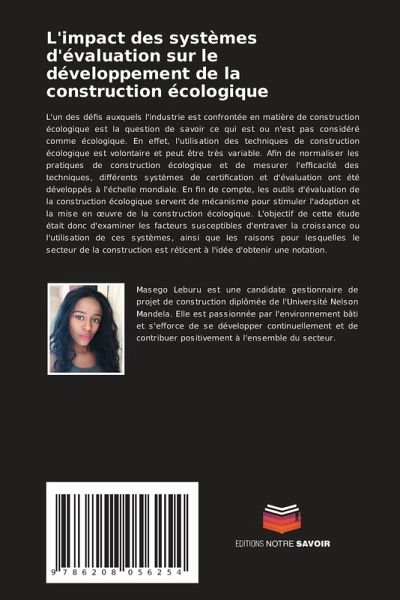 L'un des défis auxquels l'industrie est confrontée en matière de construction écologique est la question de savoir ce qui est ou n'est pas considéré comme écologique. En effet, l'utilisation des techniques de construction écologique est volontaire et peut être très variable. Afin de normaliser les pratiques de construction écologique et de mesurer l'efficacité des techniques, différents systèmes de certification et d'évaluation ont été développés à l'échelle mondiale. En fin de compte, les outils d'évaluation de la construction écologique servent de mécanisme pour stimuler l'adoption et la mise en oeuvre de la construction écologique. L'objectif de cette étude était donc d'examiner les facteurs susceptibles d'entraver la croissance ou l'utilisation de ces systèmes, ainsi que les raisons pour lesquelles le secteur de la construction est réticent à l'idée d'obtenir une notation.