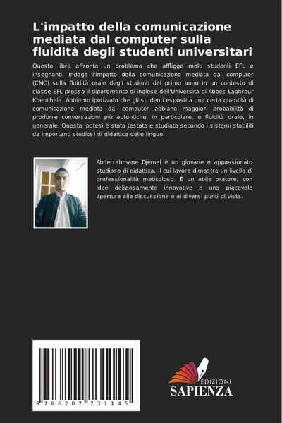 Questo libro affronta un problema che affligge molti studenti EFL e insegnanti. Indaga l'impatto della comunicazione mediata dal computer (CMC) sulla fluidità orale degli studenti del primo anno in un contesto di classe EFL presso il dipartimento di inglese dell'Università di Abbes Laghrour Khenchela. Abbiamo ipotizzato che gli studenti esposti a una certa quantità di comunicazione mediata dal computer abbiano maggiori probabilità di produrre conversazioni più autentiche, in particolare, e fluidità orale, in generale. Questa ipotesi è stata testata e studiata secondo i sistemi stabiliti da importanti studiosi di didattica delle lingue.
