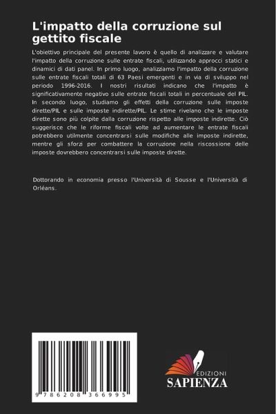 L'obiettivo principale del presente lavoro è quello di analizzare e valutare l'impatto della corruzione sulle entrate fiscali, utilizzando approcci statici e dinamici di dati panel. In primo luogo, analizziamo l'impatto della corruzione sulle entrate fiscali totali di 63 Paesi emergenti e in via di sviluppo nel periodo 1996-2016. I nostri risultati indicano che l'impatto è significativamente negativo sulle entrate fiscali totali in percentuale del PIL. In secondo luogo, studiamo gli effetti della corruzione sulle imposte dirette/PIL e sulle imposte indirette/PIL. Le stime rivelano che le imposte dirette sono più colpite dalla corruzione rispetto alle imposte indirette. Ciò suggerisce che le riforme fiscali volte ad aumentare le entrate fiscali potrebbero utilmente concentrarsi sulle modifiche alle imposte indirette, mentre gli sforzi per combattere la corruzione nella riscossione delle imposte dovrebbero concentrarsi sulle imposte dirette.